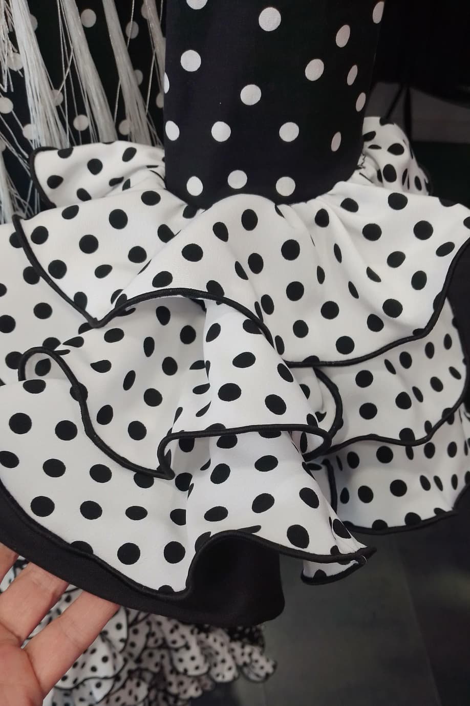 Vestido de algodon con licra y volantes de crespon,con enagua y cancan